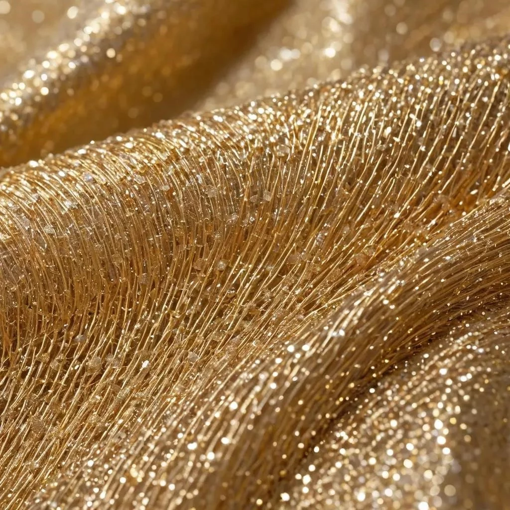 | Металлизированная парча | Интенсивное мерцание, жесткость | Выраженная колкость, держит форму |